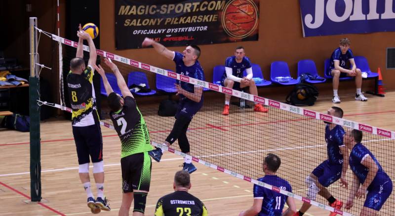 To był zaległy mecz 17. kolejki grupy „B”. Niestety, po raz kolejny nie udało się nam zebrać optymalnego składu. Wpływ na to miały sprawy zawodowe, rodzinne i urazy. Zabrakło przede wszystkim nominalnych atakujących. Do gry musiał wrócić prezes Tomasz Kołodziej. Szansę gry z seniorami otrzymał też Miłosz Makowski, który trenuje w naszym klubie w grupie kadetów i juniorów. Goście walczący o „czwórkę” mocno się zmotywowali i wystawili szeroki skład. Oni musieli wygrać za trzy punkty. Początek 1. seta był wyrównany (1:2, 3:2, 3:4, 6:5, 6:9, 8:9, 9:10). Od 10:11 zaczęła się zarysowywać przewaga siatkarzy z Ostromecka, którzy odskoczyli na sześć „oczek”(16:10). Gospodarze jeszcze zbliżyli się na 14:17 po dwóch atakach z rzędu Macieja Madeja, ale za chwilę przegrywali już 14:20 i 15:22. Strat już nie udało się odrobić.