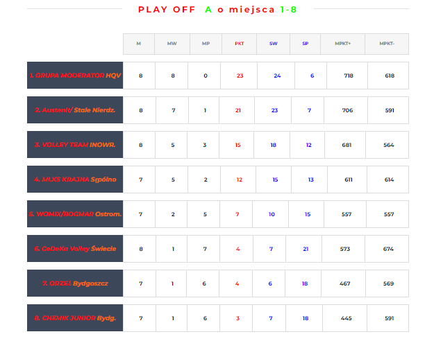 Mimo piątkowej porażki nasz zespół pozostał na 6. miejscu w tabeli grupy „A” (o miejsca 1-8) Autonomicznej Ligi Siatkówki Mężczyzn w Bydgoszczy.